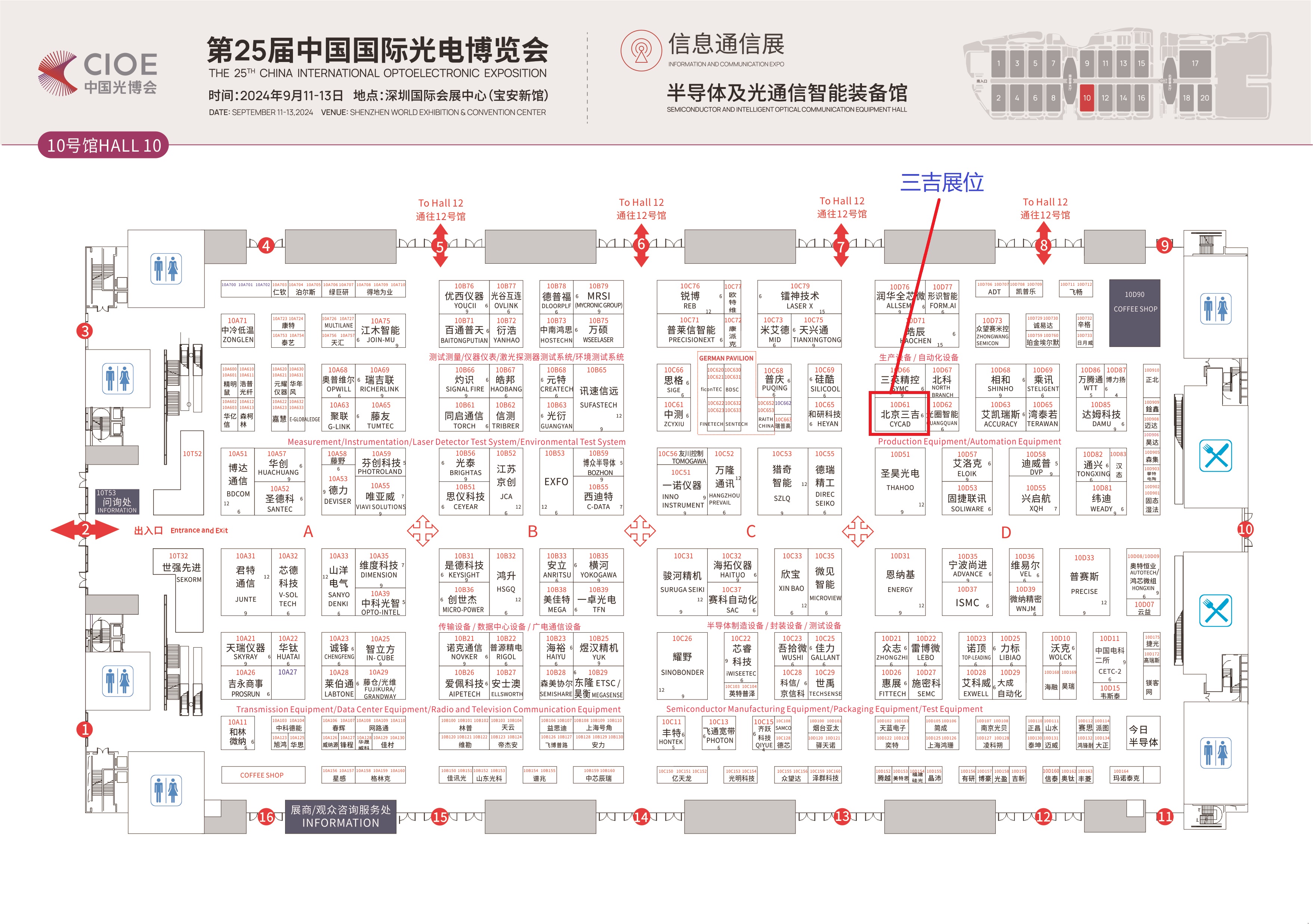 今年的光博會(huì)【信息通信展】在9號(hào)館~12號(hào)館舉辦,三吉展位(10D61)位于10號(hào)館D區(qū)靠近7號(hào)門處。